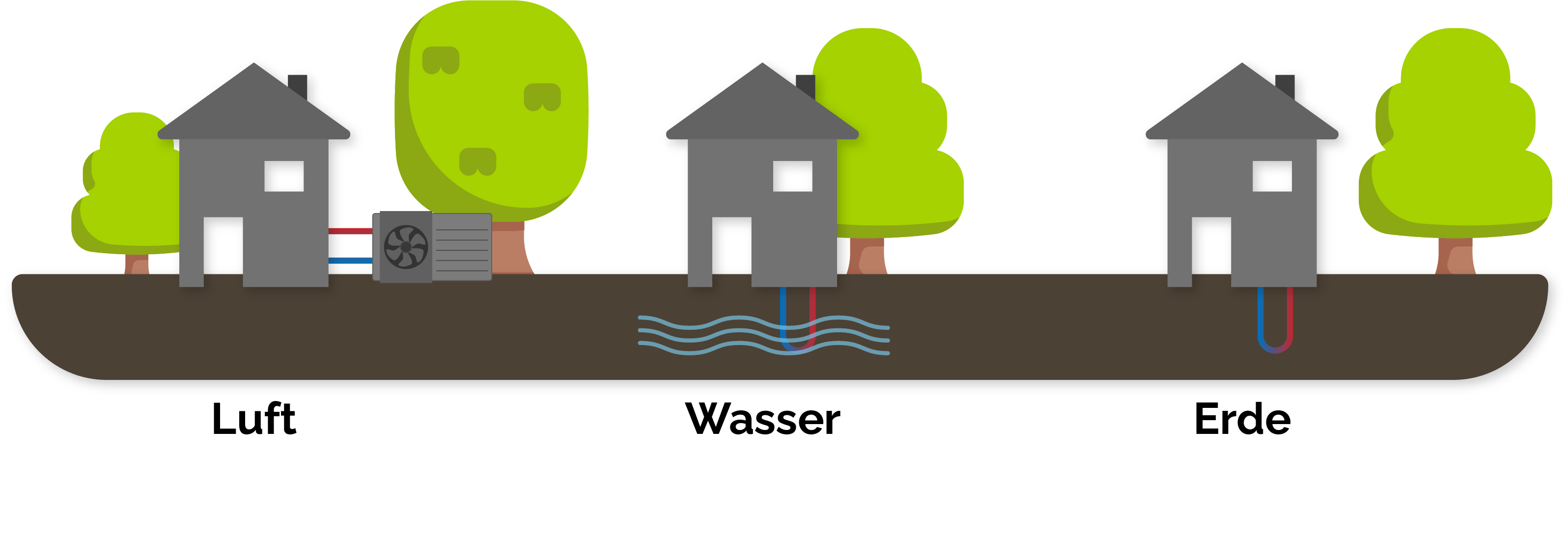Eine Luft-Wasser-Wärmepumpe gewinnt Wärme aus der Außenluft, die Sole-Wasser-Wärmepumpe aus dem Erdreich.